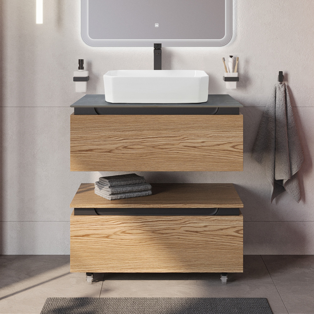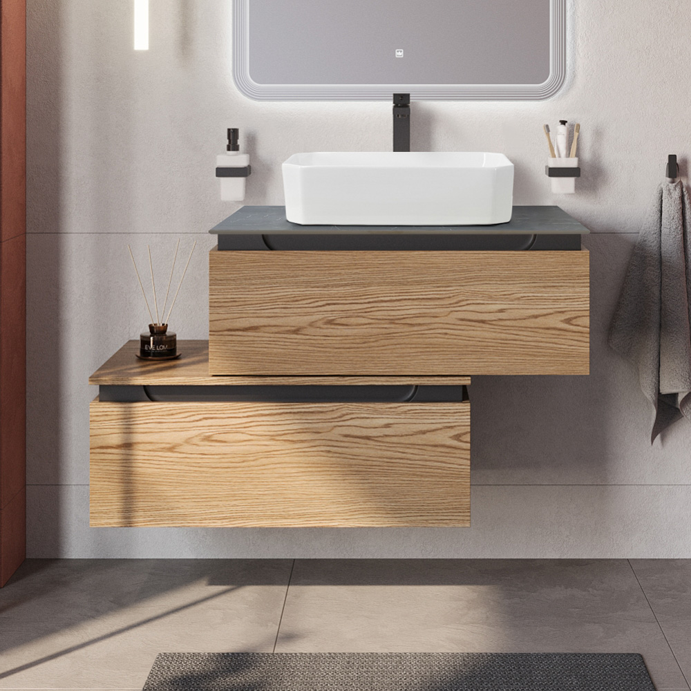 CEZARES — Тумба со столешницей подвесная и нижней тумбой SLIDER 80 Дуб тангент, столешница SLD-80/48-MNO