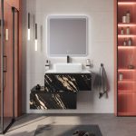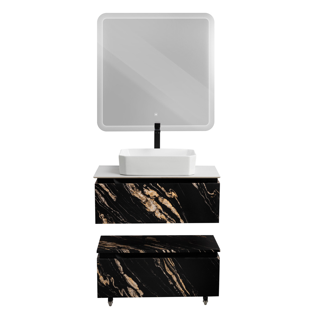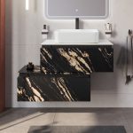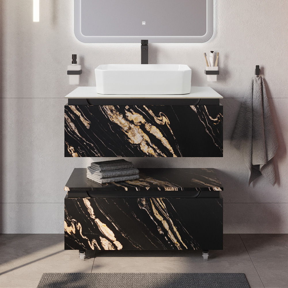 CEZARES — Тумба со столешницей подвесная и нижней тумбой SLIDER 80 Чёрный фьюжн, столешница SLD-80/48-BO