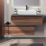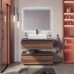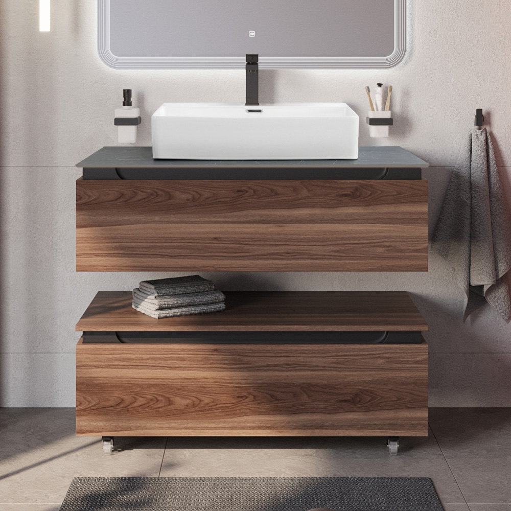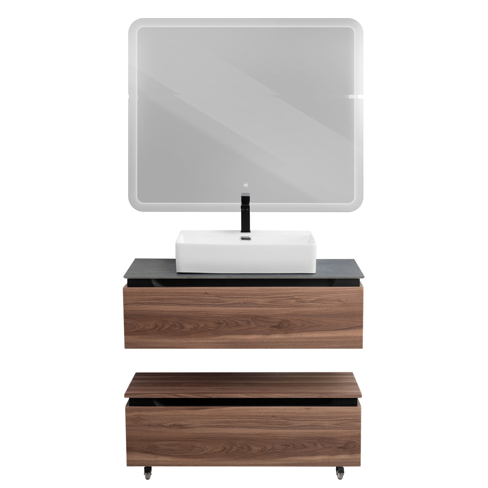 CEZARES — Тумба со столешницей подвесная и нижней тумбой SLIDER 100 Орех дымчатый, столешница SLD-100/48-MNO