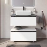 CEZARES — Тумба со столешницей подвесная и нижней тумбой SLIDER 80 Bianco Opaco, столешница SLD-80/48-MNO
