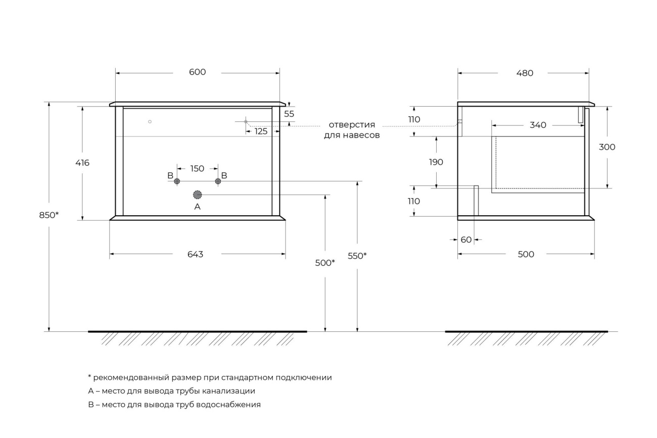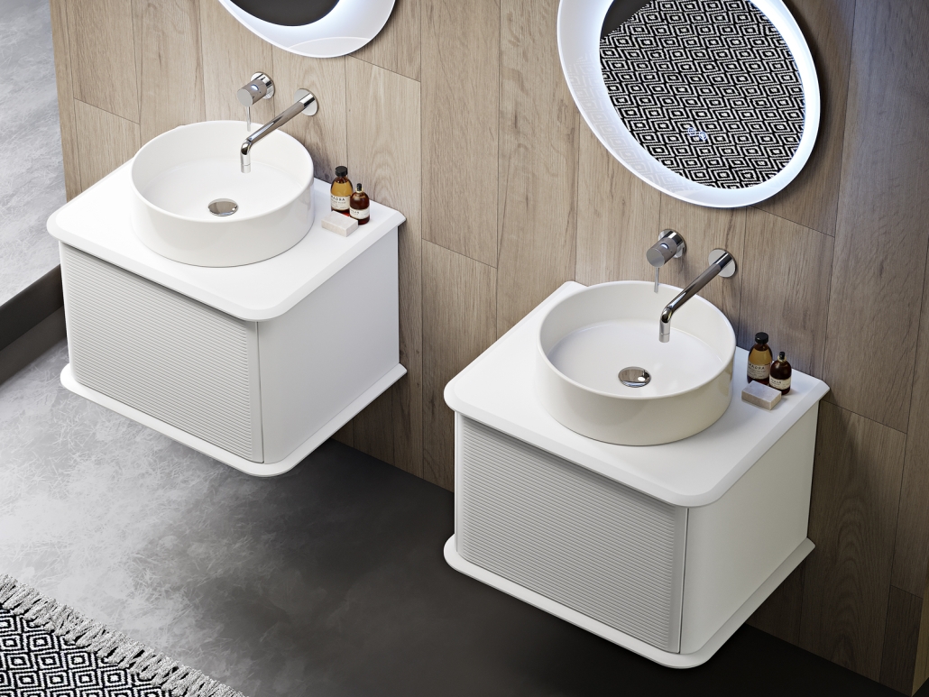 CEZARES — Тумба со столешницей подвесная IDRA 64 Bianco Opaco, столешница 55825 Bianco opaco