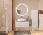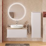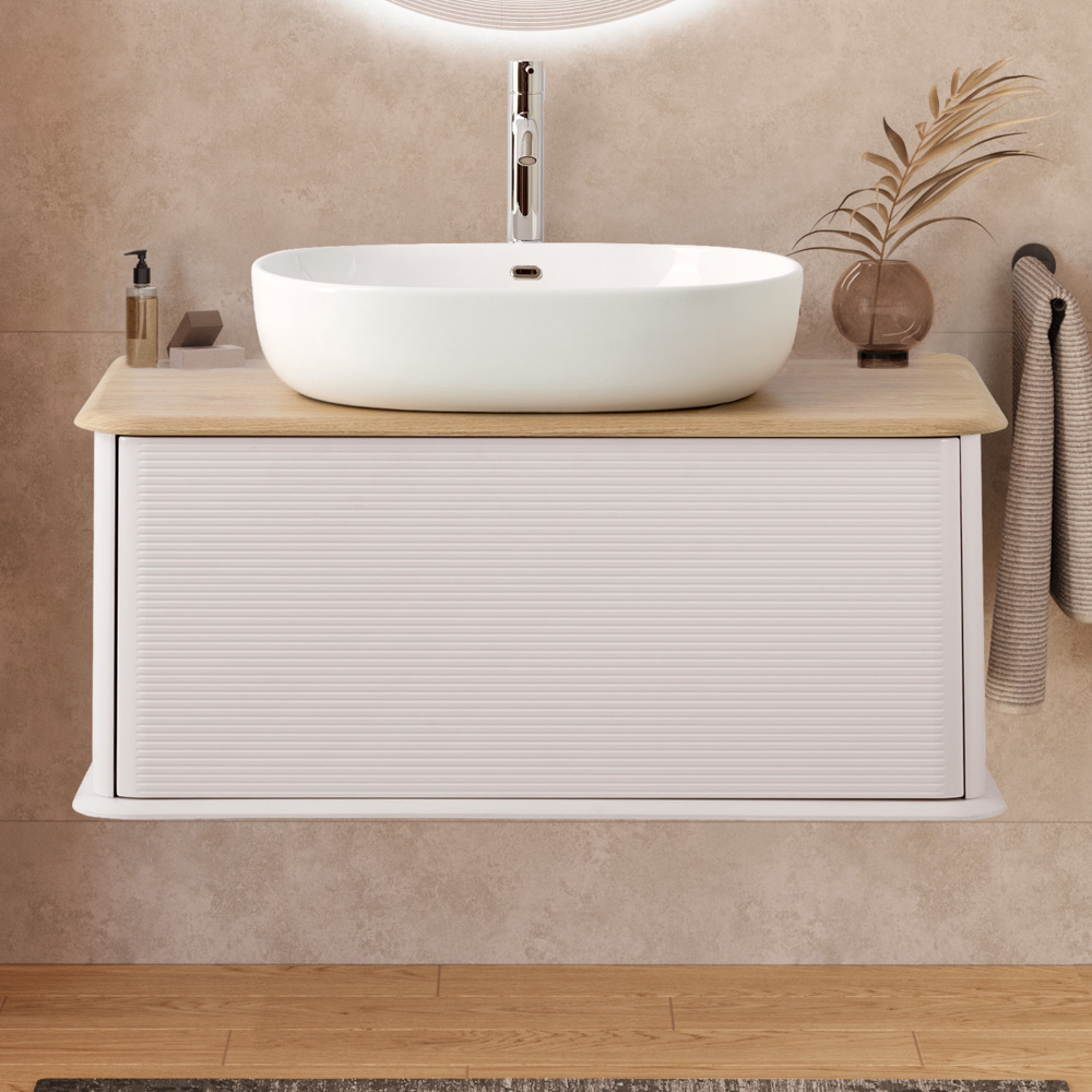 CEZARES — Тумба со столешницей подвесная IDRA 98 Bianco opaco, столешница 55836 Rovere Tabacco
