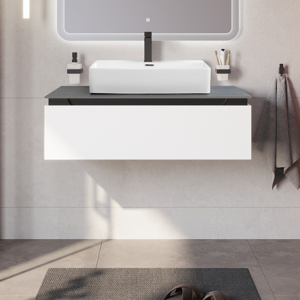 CEZARES — Тумба со столешницей подвесная SLIDER 100 Bianco Opaco, столешница SLD-100/48-MNO