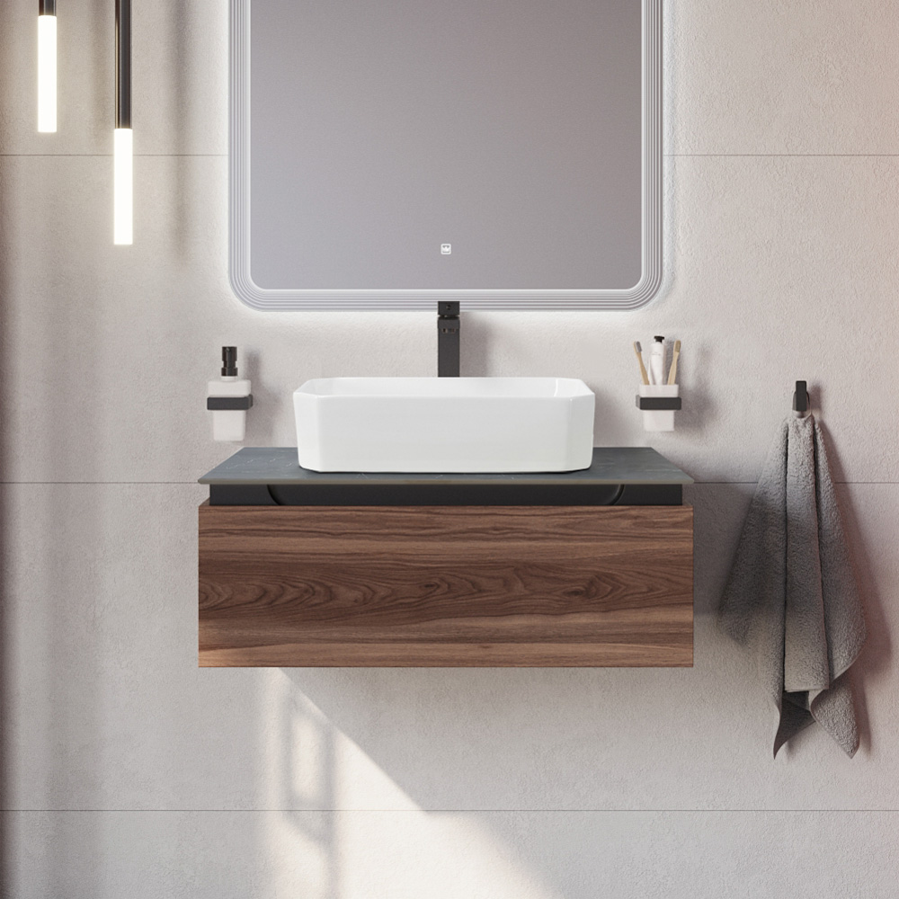 CEZARES — Тумба со столешницей подвесная SLIDER 80 Орех дымчатый, столешница SLD-80/48-MNO