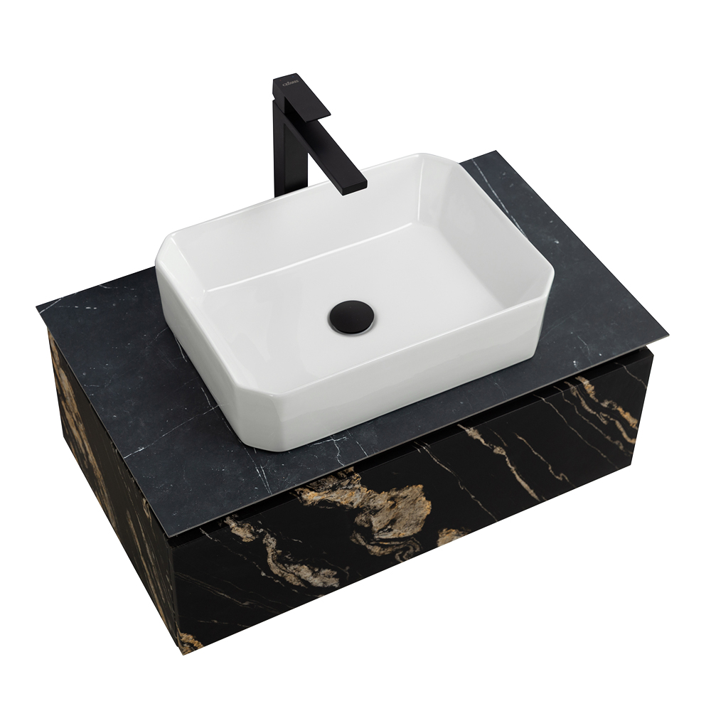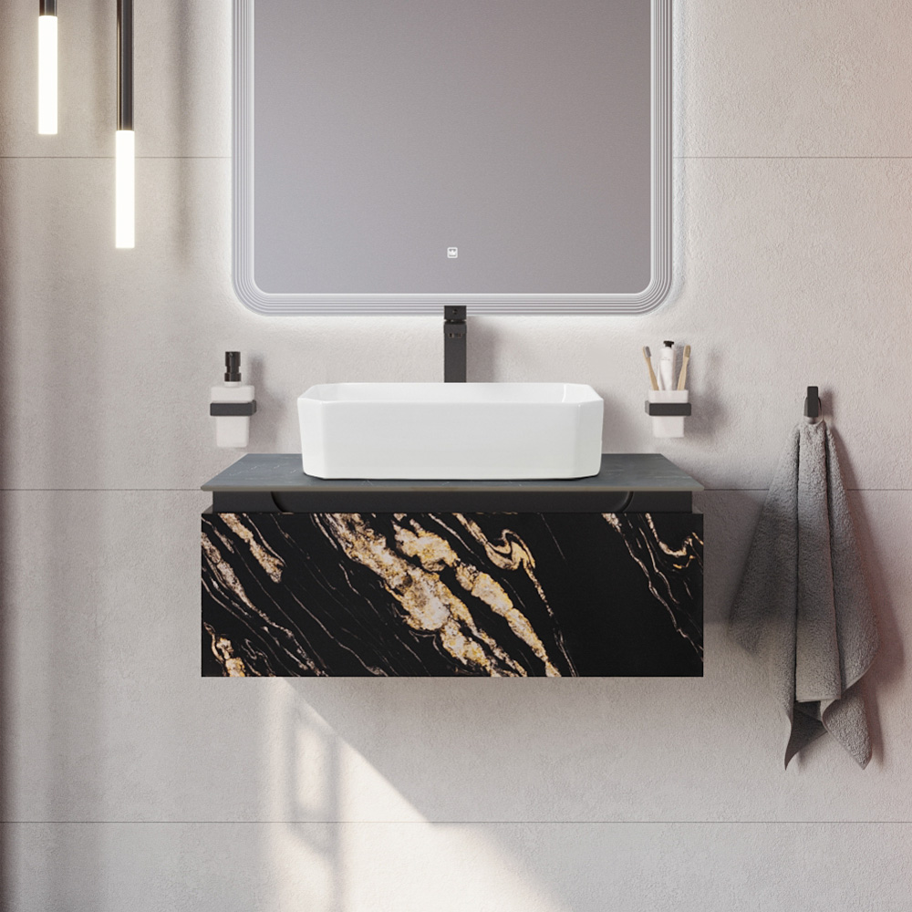 CEZARES — Тумба со столешницей подвесная SLIDER 80 Чёрный фьюжн, столешница SLD-80/48-MNO