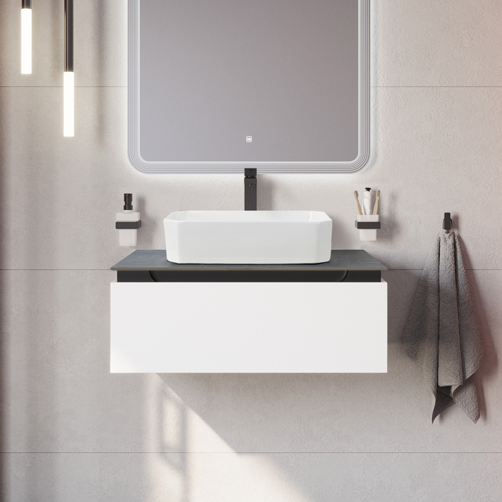 CEZARES — Тумба со столешницей подвесная SLIDER 80 Bianco Opaco, столешница SLD-80/48-MNO