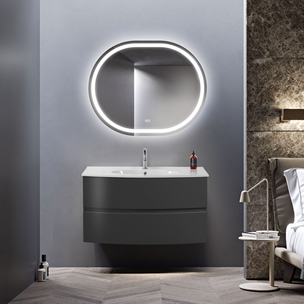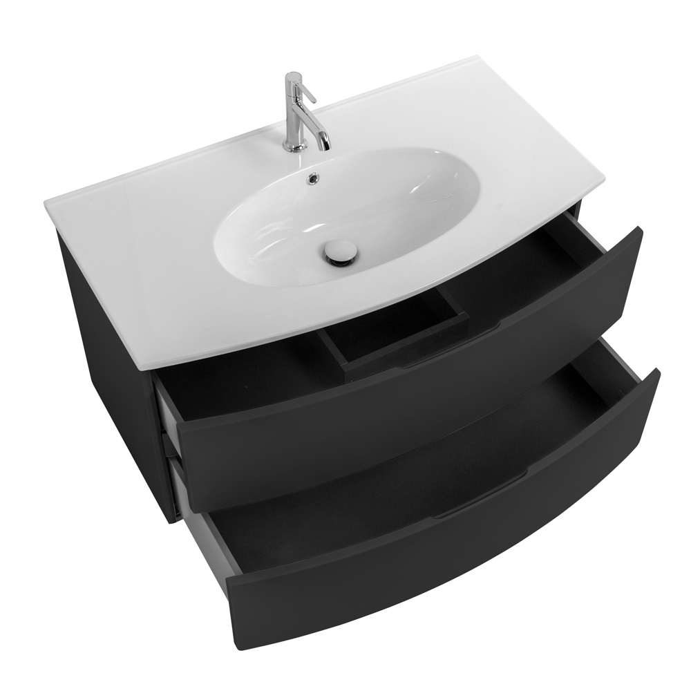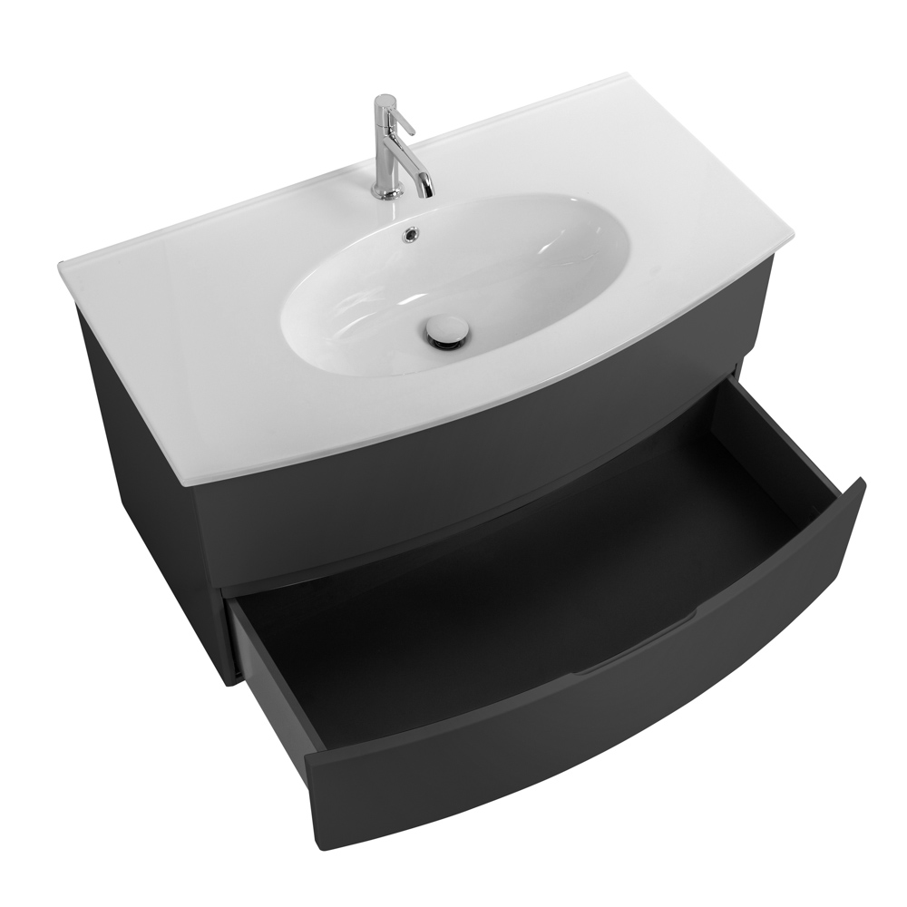 CEZARES — Тумба с керамической раковиной подвесная ELETTRA 100 Grafite, раковина белая