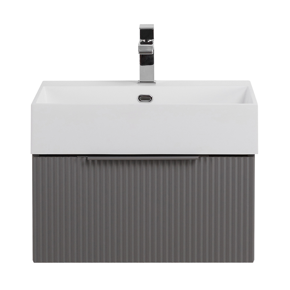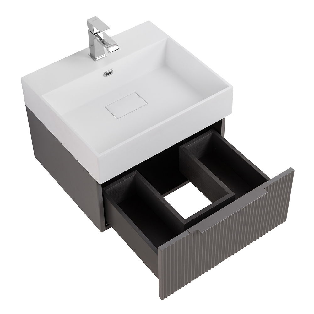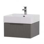 Главная Сантехника Мебель для ванных комнат CEZARES — Тумба с раковиной подвесная и одним выдвижным ящиком PREMIUM 50 Plisse Grigio nuvola, раковина белая