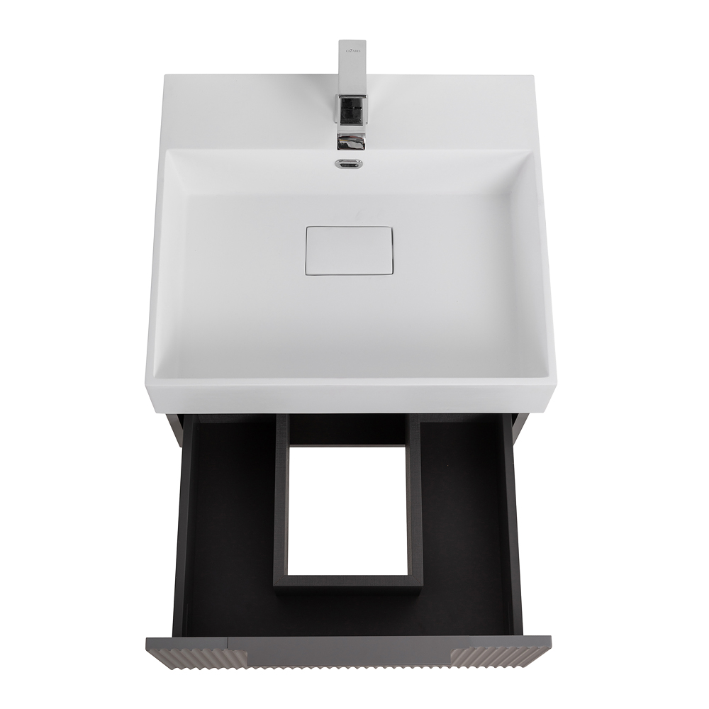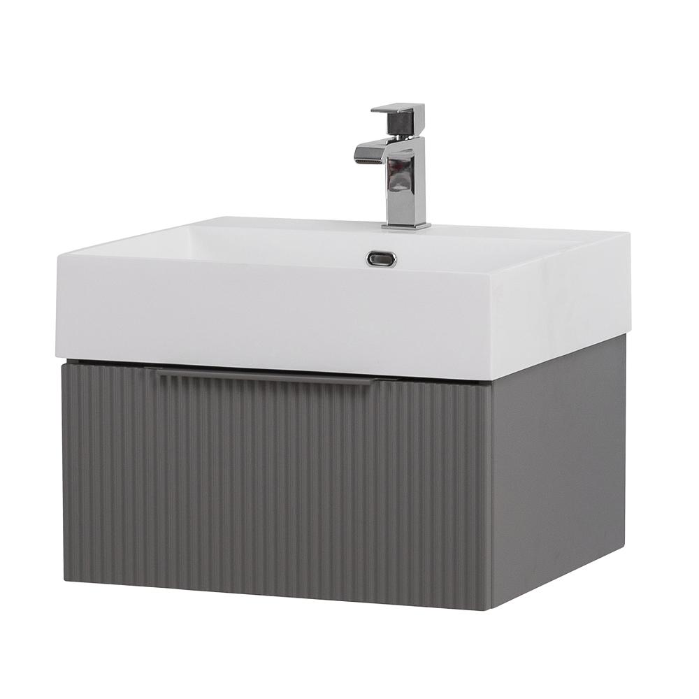 CEZARES — Тумба с раковиной подвесная и одним выдвижным ящиком PREMIUM 50 Plisse Grigio nuvola, раковина белая