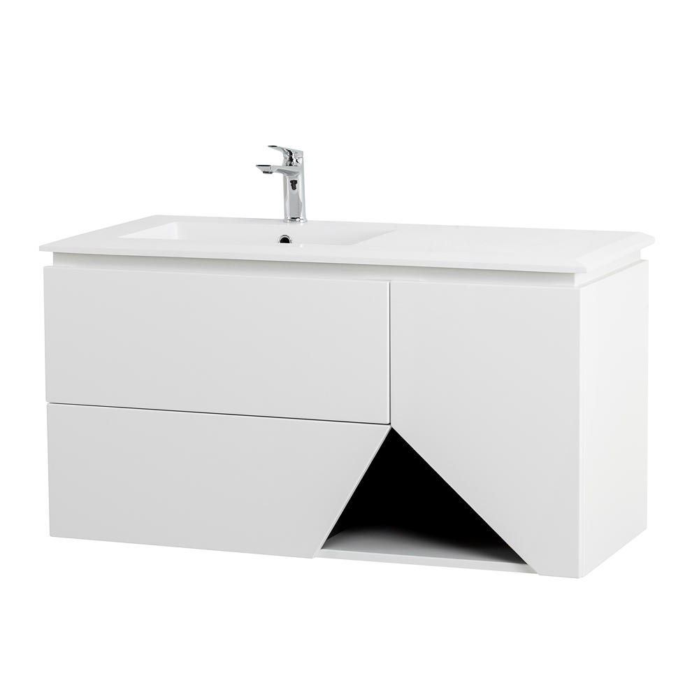 Комплект поставки: • Тумба • Раковина с декоративной накладкой на отверстие перелива в цвете хром, 1 отверстие под смеситель,
