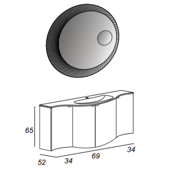 Комплект поставки: • Тумба • Раковина с декоративной накладкой на отверстие перелива в цвете хром, 1 отверстие под смеситель,