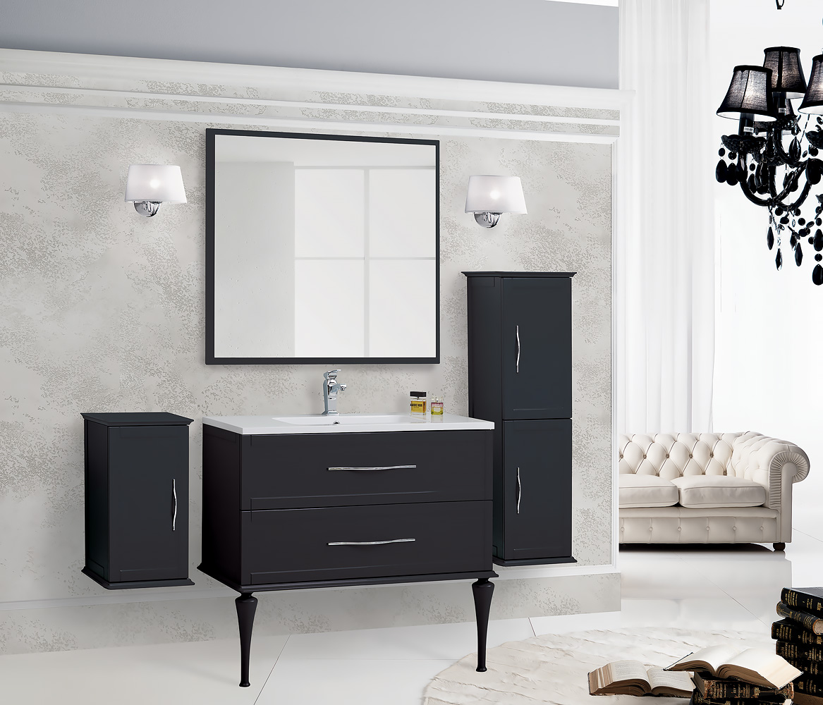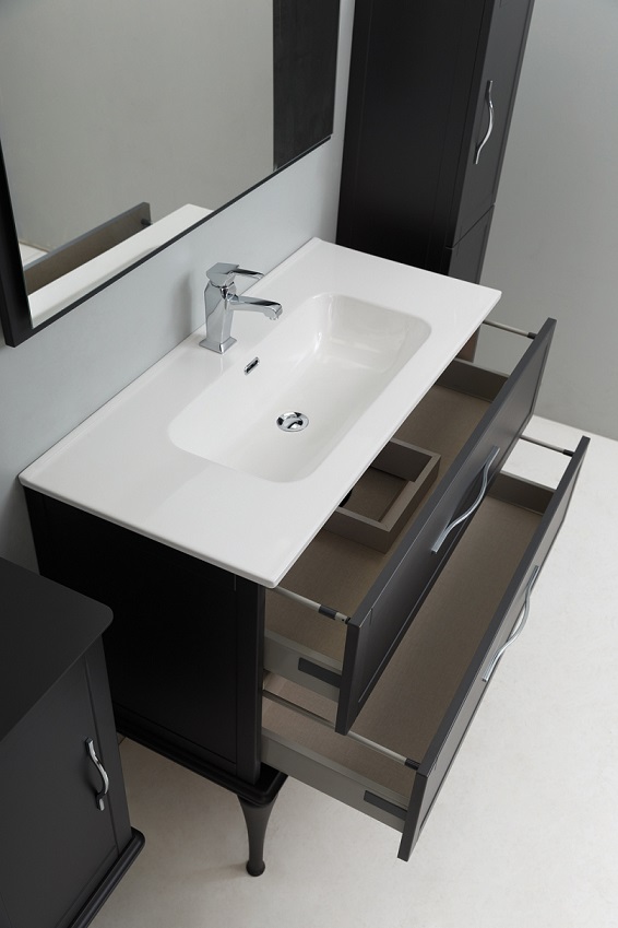 Главная Сантехника Мебель для ванных комнат CEZARES — Тумба с раковиной подвесная TIFFANY 100 Nero Grafite, раковина белая