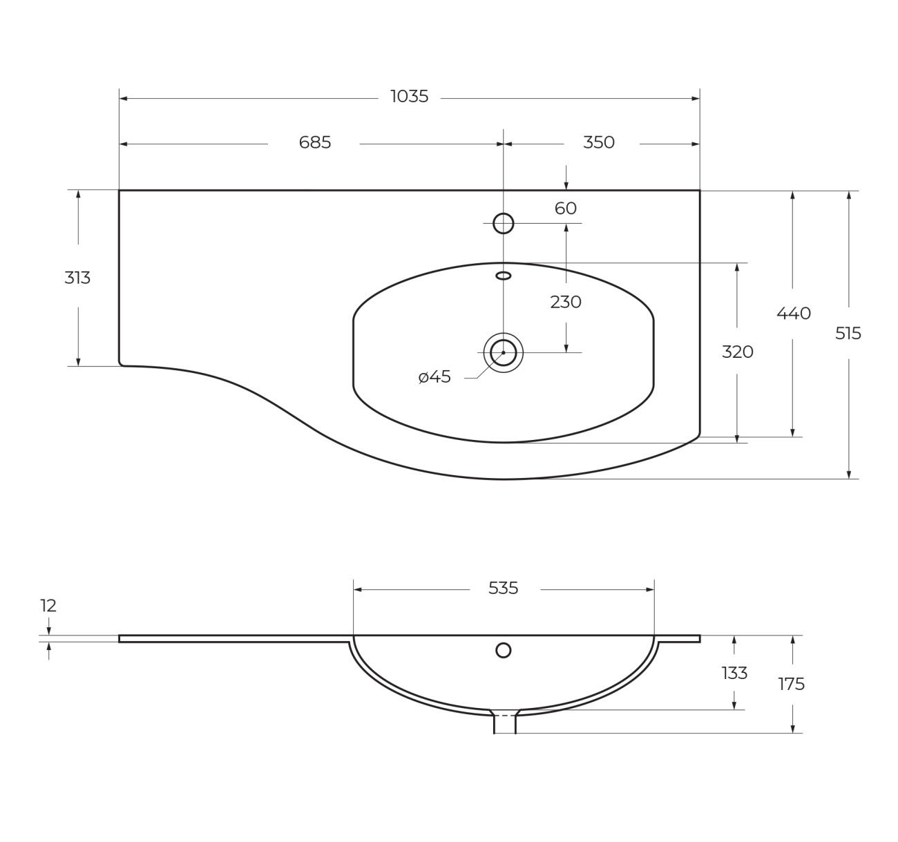 Комплект поставки: • Тумба • Раковина с декоративной накладкой на отверстие перелива в цвете хром, 1 отверстие под смеситель,