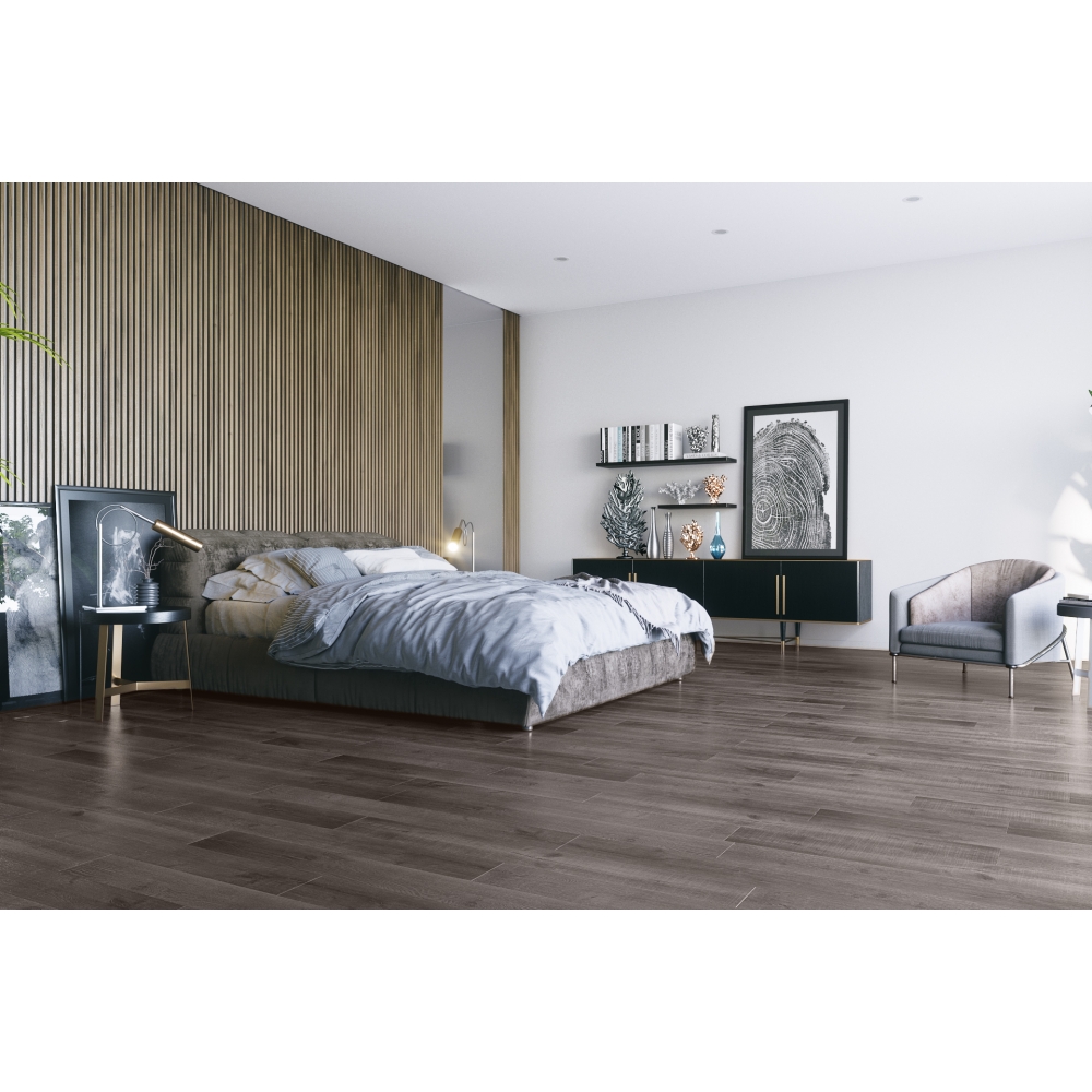 Кварцевый ламинат Fargo Classic 81996-7 Дуб Мокко предназначен для жилых и полукоммерческих помещений со средними нагрузками: 34 класс износостойкости с защитным полиуретановым слоем толщиной 0,3 мм и УФ-обработкой. Для комфортной эксплуатации каменно-полимерной плитки рекомендуется укладка на фирменную подложку.