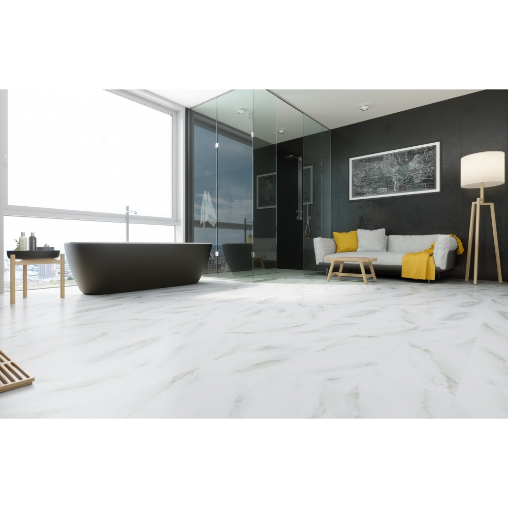 Кварцевый ламинат Fargo Stone 6089-1 Белый Мрамор предназначен для жилых и полукоммерческих помещений со средними нагрузками: 34 класс износостойкости с защитным полиуретановым слоем толщиной 0,3 мм и УФ-обработкой. Для комфортной эксплуатации каменно-полимерной плитки рекомендуется укладка на фирменную подложку.