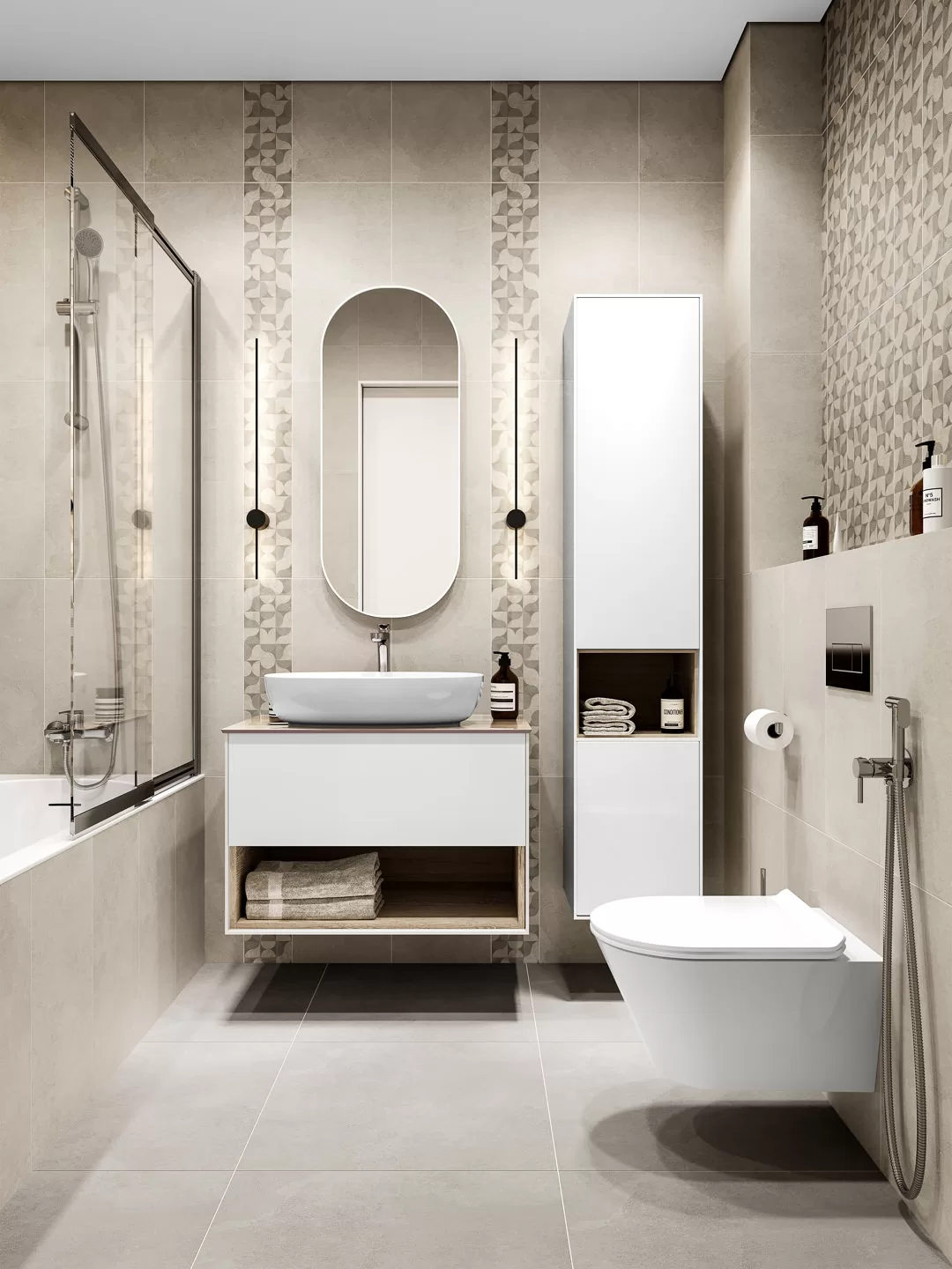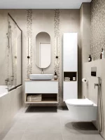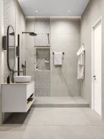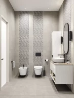 Спокойные тона фоновой плитки и оригинальный орнамент буду отлично смотреться в интерьерах современной направленности, техно или хай-теке. Керамогранит под камень и геометрический абстрактный декор будут уместны и в стиле «мид-сенчури модерн», связанном с дизайном 60-х годов прошлого столетия. Ему свойственны функциональность, лёгкость, акцент на формах и текстурах.