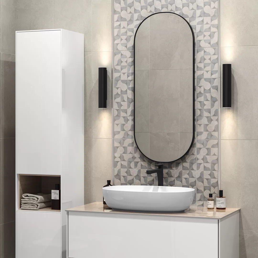 Серия «Авенида» — это базовая настенная плитка 30х60 см с эстетикой камня, выполненная в двух спокойных оттенках серого и бежевого.