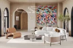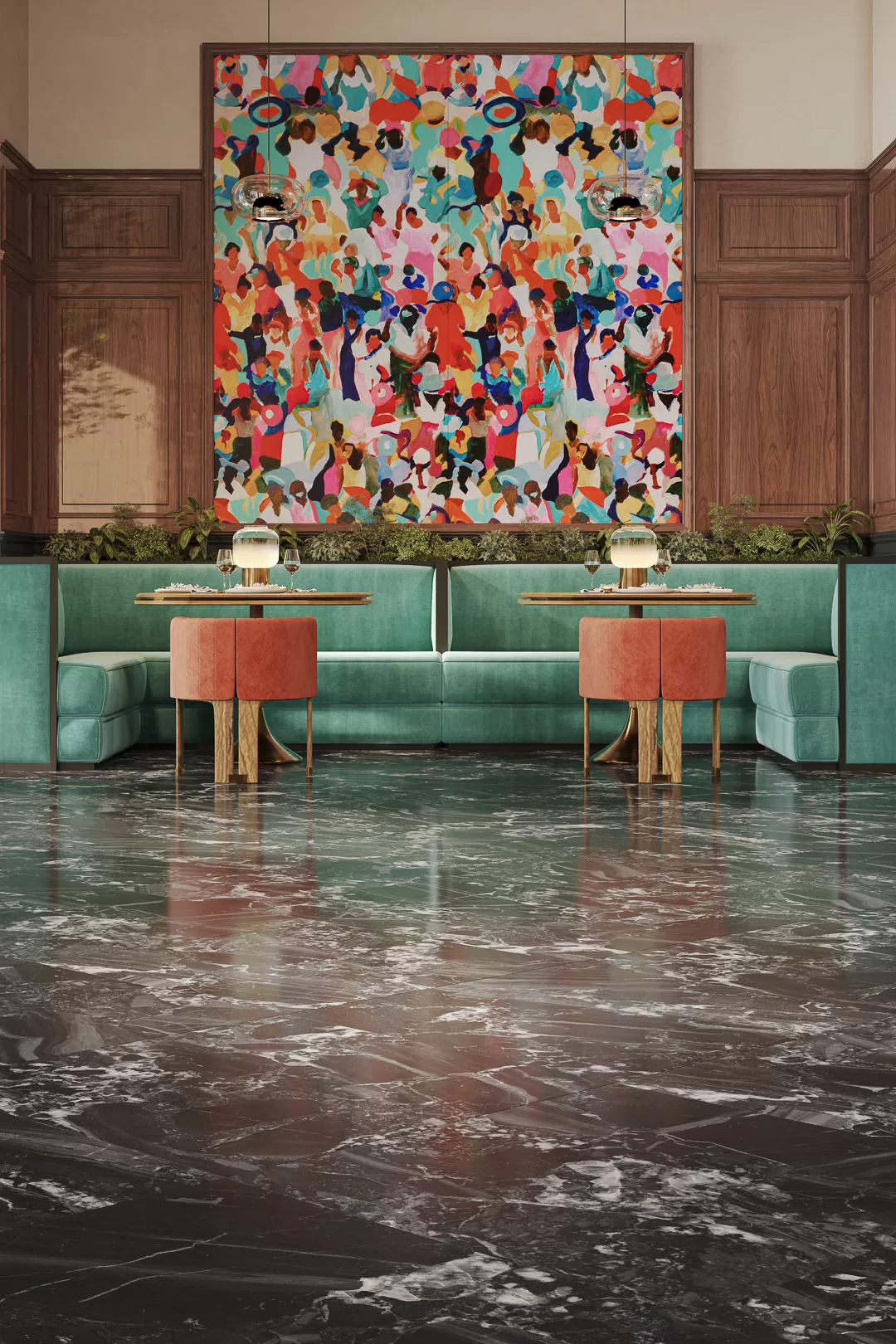 Керамогранит «Агадир» можно применять для отделки стен и пола, включая влажные зоны. Глубокие оттенки гармонично сочетаются с керамическим деревом, камнем и бетоном, создавая выразительную игру цветов и текстур. Благодаря МАКСИ-формату 119,5×238,5 см рисунок смотрится особенно выразительно. Графика сделана так, что раскладку можно продолжить по вертикали или горизонтали, чтобы создать на стене или полу эффектное панорамное покрытие.