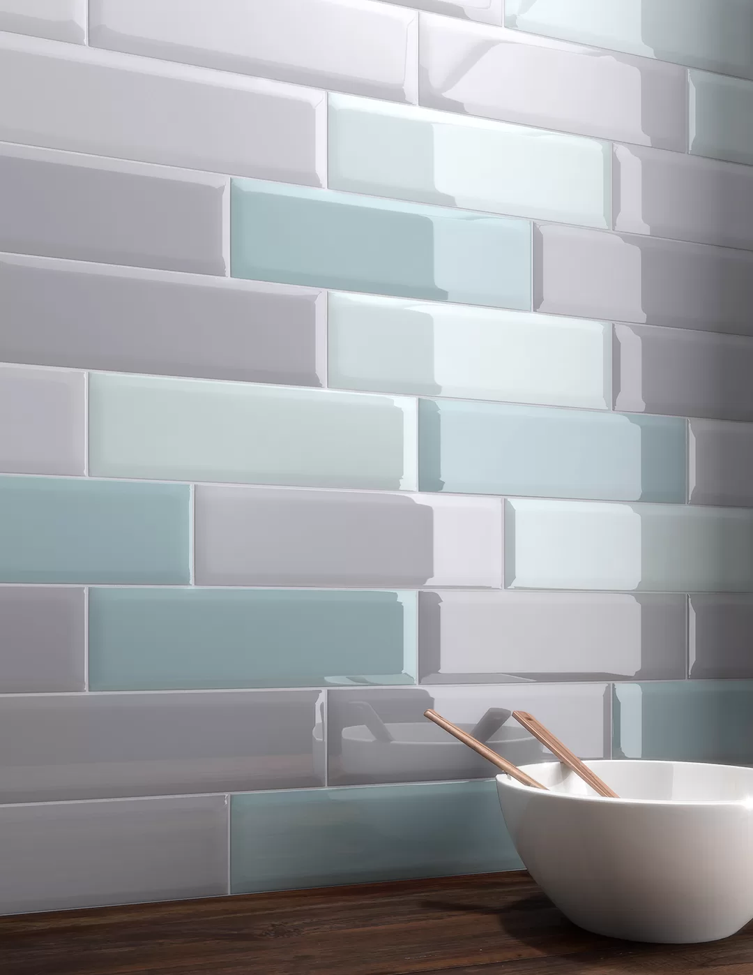 Формат 8,5×28,5 даёт возможность экспериментировать с вариантами укладки. Если это плитка-кабанчик на фартук, то укладка ёлочкой позволит сделать кухню нарядной, используя даже материал одного цвета. Скошенные грани и блестящая поверхность добавят в интерьер интересную игру света и тени. Если стоит задача сделать стену акцентной, достаточно подобрать два и более цветов из палитры идеально сбалансированных оттенков, и уложить их в единую композицию.