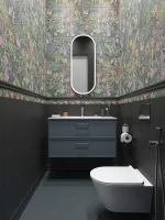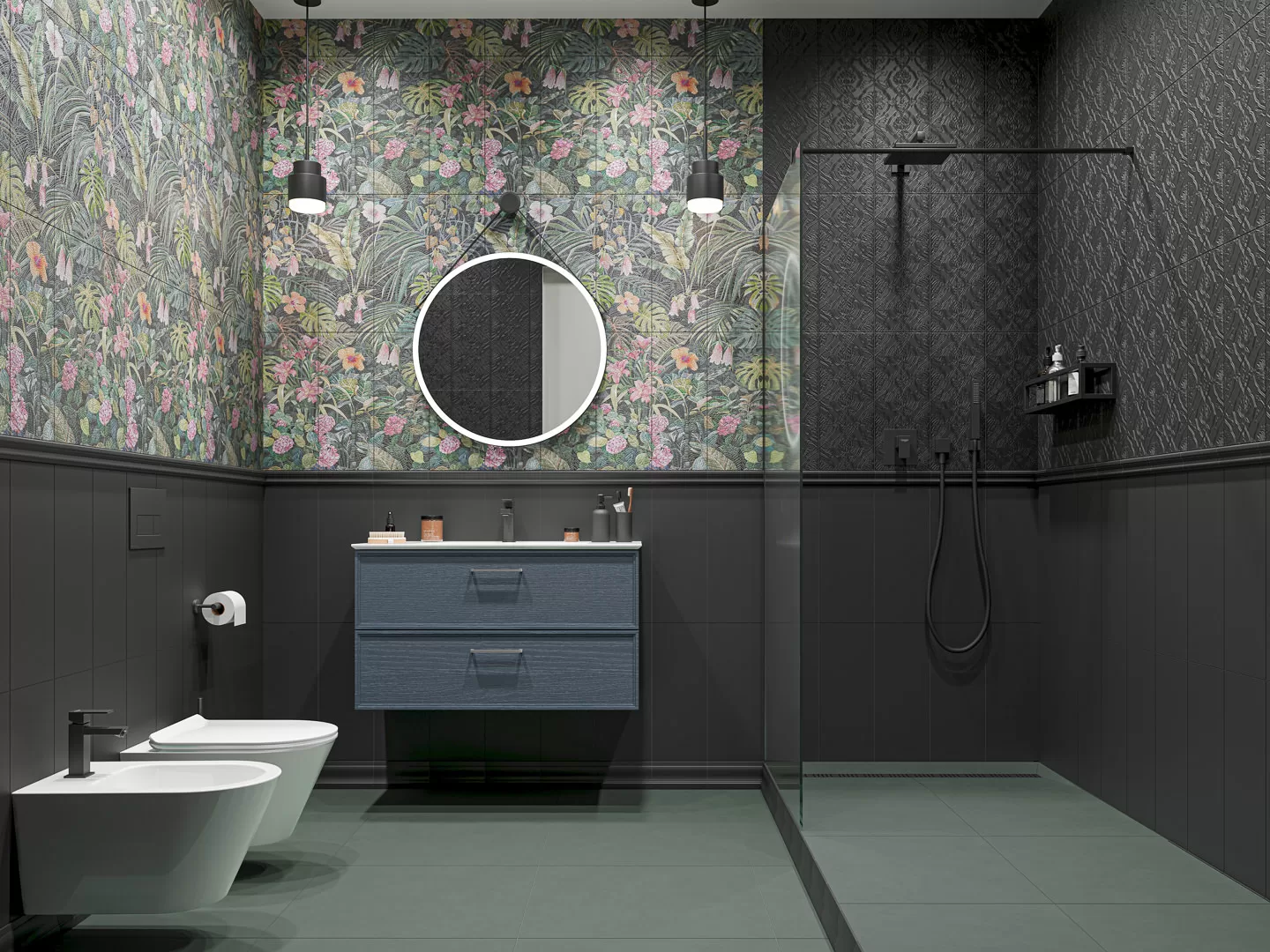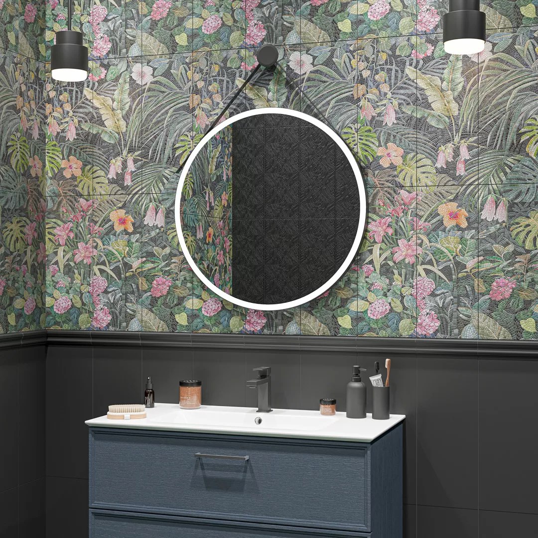 В качестве компаньонов к флористическому панно предлагается строгая белая и черная матовая плитка. Если мы говорим о панно в ванной, то рядом с ним приживется санкерамика и мебель в современной стилистике, однотонные полотенца, светильники простых форм.