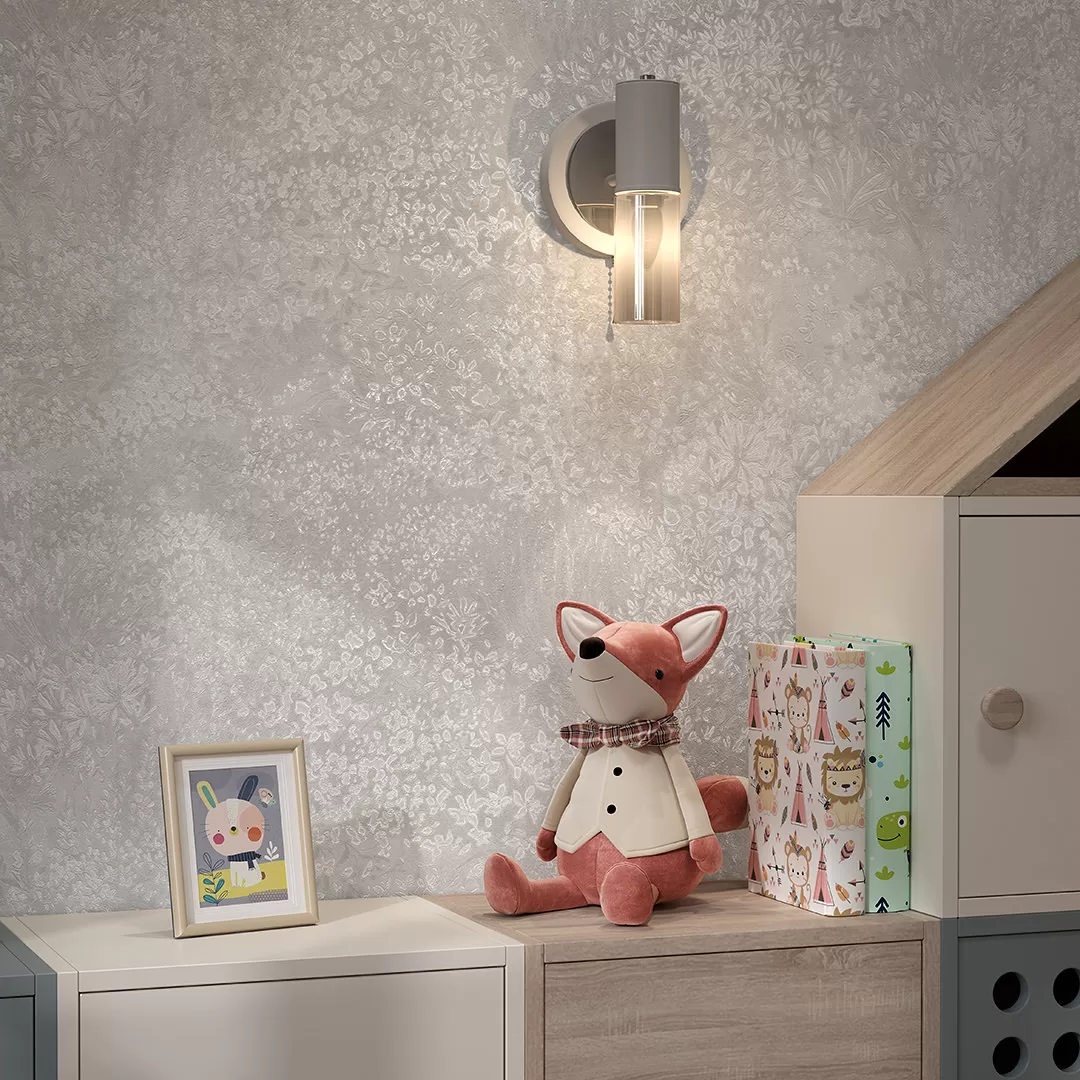 Базовые обои в серии «Апрель» воспроизводят эффект шпатлевки и в чём-то напоминают загрунтованный холст, ожидающий первых прикосновений кисти мастера. Использовать базу можно отдельно от мотивов или оттенять простой структурой красоту тосканских первоцветов.