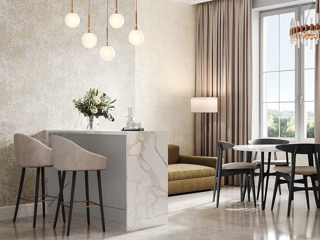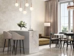 Второй мотив также посвящён цветам. Здесь они выглядят ухоженной лужайкой: на стене такая будет отлично смотреться в качестве панно, создавая в интерьере необычный акцент. Узоры обоев расцветят пространство и наполнят интерьер атмосферой пришедшей весны.