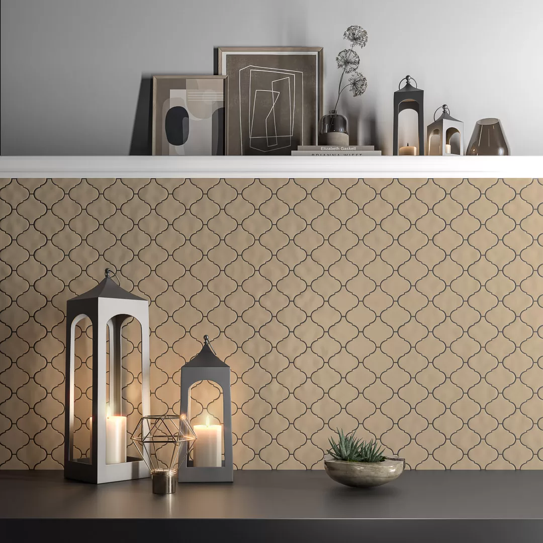 В ассортименте KERAMA MARAZZI арабески появились благодаря коллекции «Испанская фиеста», наполненной разными влияниями — в том числе отголосками мавританской культуры. Восточный колорит ощущается и в Марокко, поэтому неудивительно, что новая коллекция обращается к мозаичной плитке характерной ориентальной формы. Изящный формат арабески в традиционном керамическом прочтении смотрится изысканно и подходит для интерьеров в различных стилях.