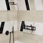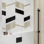 Большая керамическая плитка серии «Бертран» способна визуально расширить пространство маленького санузла посредством необычных оптических эффектов. Стыкуя наборные декоры разными способами, добиваясь рисунка W-образных линий, можно достичь иллюзии объёмных фигур. Необычная картинка меняет наше восприятие, и взгляд не может автоматически определить границы помещения.