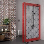 Вместе с декорами «Болао» в керамической композиции можно использовать глянцевую однотонную плитку «Граньяно» белого и красного цветов. В интерьере будет отлично смотреться мебель в той же гамме, в том числе кухонная, с добавлением красного или синего текстиля на окнах.