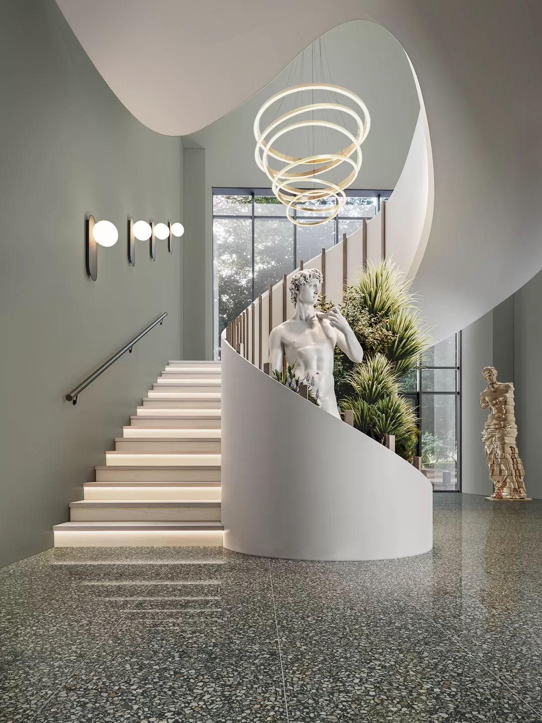 Разноцветные, часто расположенные вкрапления делают тераццо более активным: это помогает деликатно акцентировать пол как в компактных пространствах, так и на большой площади. Обрезной формат позволяет укладывать материал с минимальным швом в 2 мм, благодаря чему готовое покрытие смотрится практически бесшовным. Такой вариант отделки станет гармоничным продолжением любой темы, заданной настенной плиткой. Доступные в серии керамические ступени, подступёнки и плинтусы расширяют спектр возможных решений.<br>