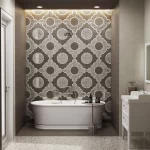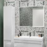 Помимо керамогранита формата 60×60, в серии предложены эффектные наборные декоры. Соединение эстетики терраццо с деревом и бетоном — интересный дизайнерский ход, который будет уместен как в классическом, так и в современном интерьере. Дополнить раскладку можно двумя видами мозаичных декоров: в серии представлены варианты формата 30×30 с квадратными чипами, а также необычная наборная мозаика с элементами вытянутой формы.