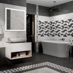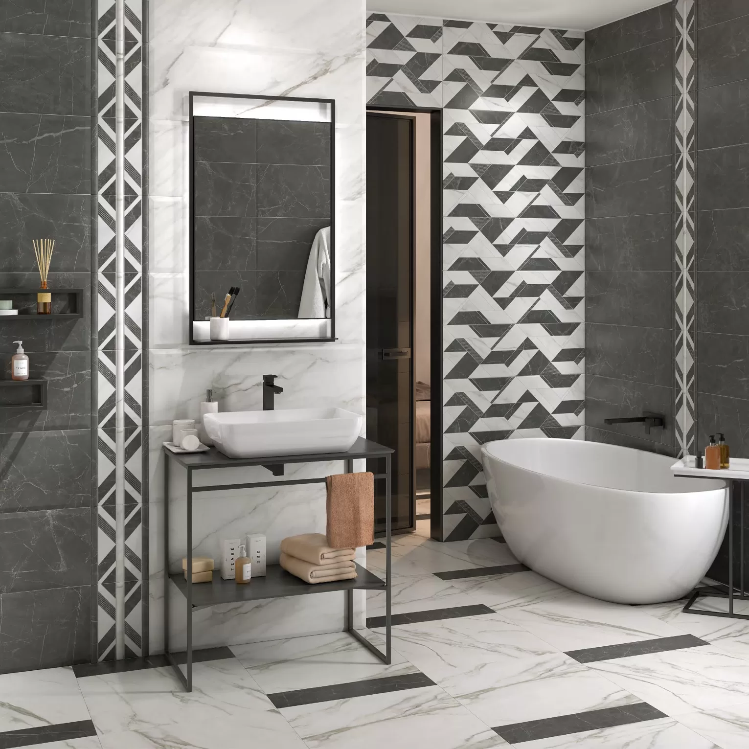 Описание Коллекция настенной плитки Anturin в формате 300×900 мм., где благородство белого и серого мрамора переплетается с урбанистическим шармом двух