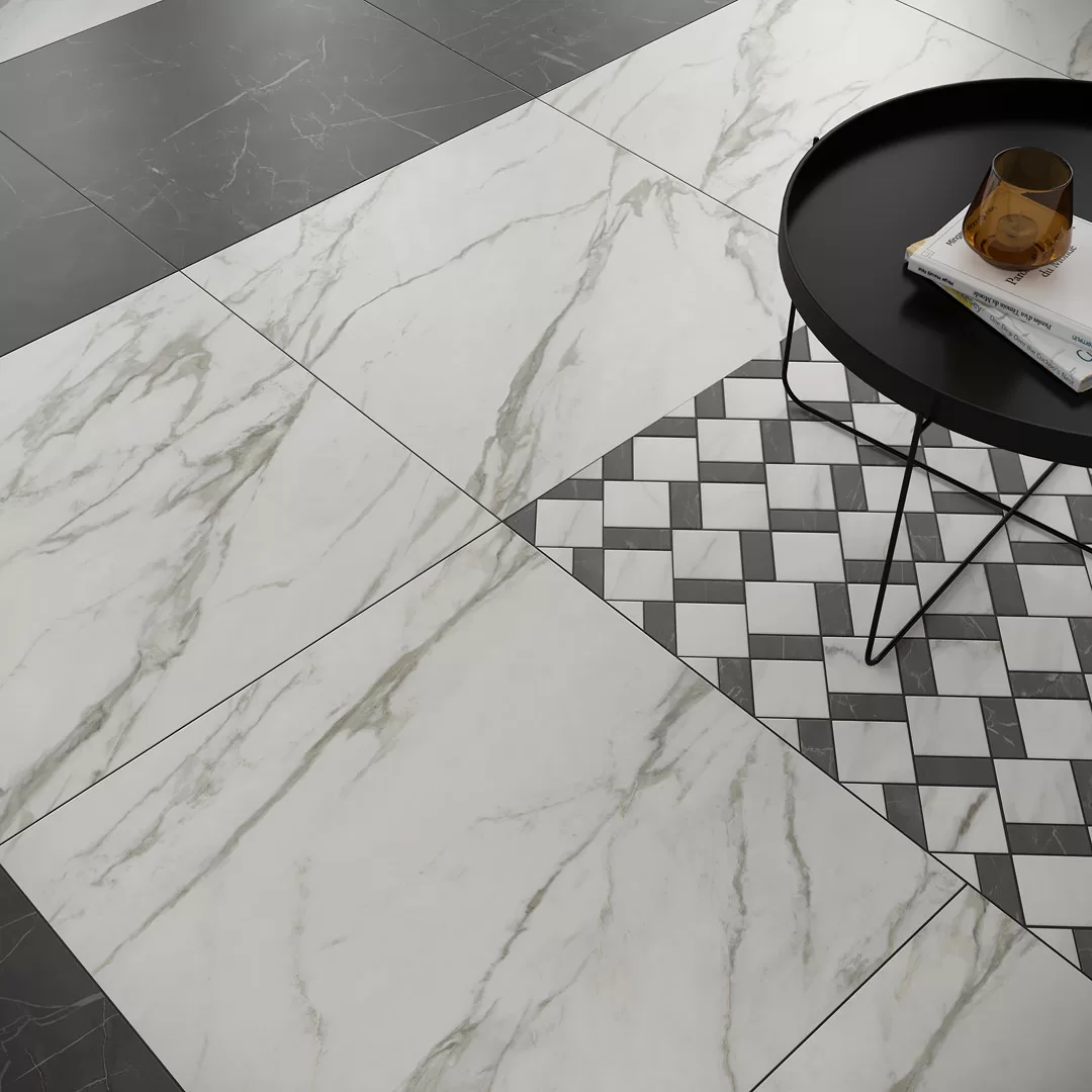 Описание Лаппатированный керамогранит передает текстуру натурального мрамора Бьянка Каррара. Мрамор обладает жемчужно-белым цветом с серым оттенком, на поверхности которого располагаются