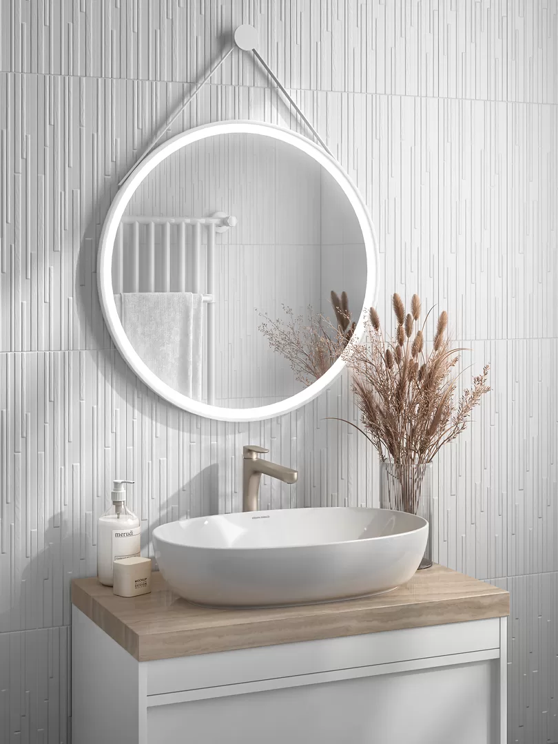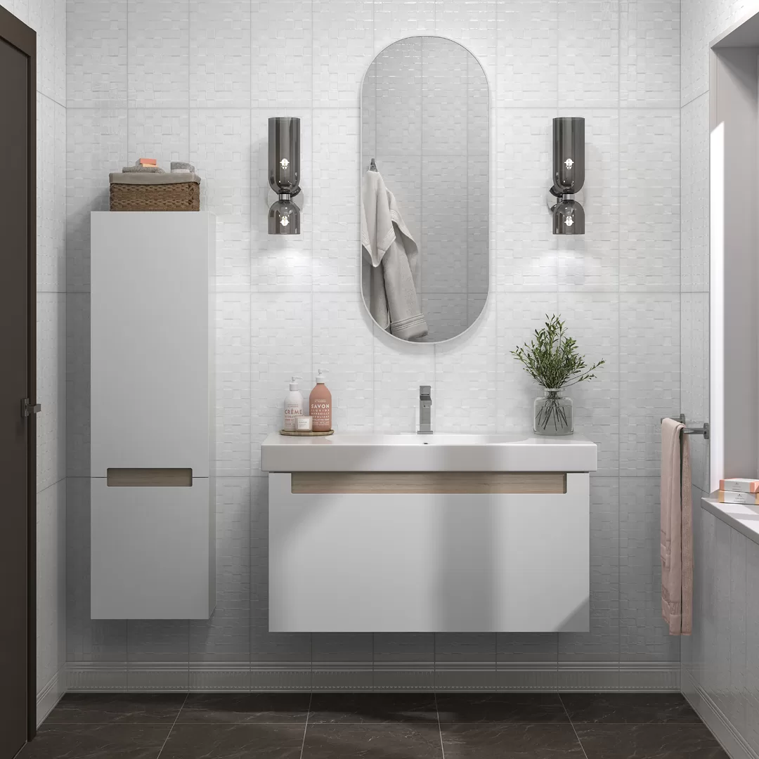 Все артикулы новой серии предложены в удобном формате 20×60 см. Он позволяет экспериментировать с керамической композицией, при желании совмещая укладку по горизонтали и вертикали. Для создания законченного покрытия можно также использовать специальные изделия из других серий: белые плинтусы, бордюры, бисер.
