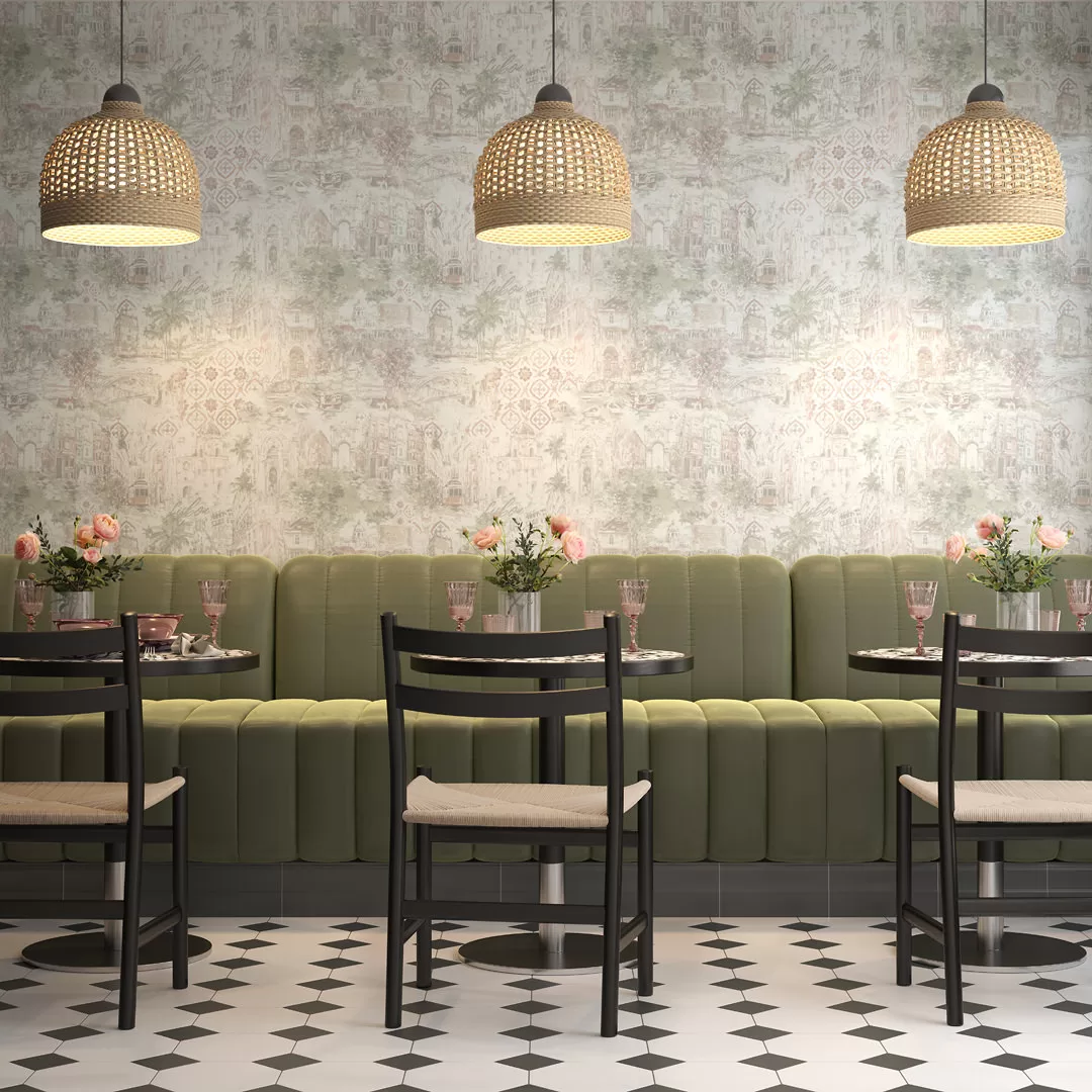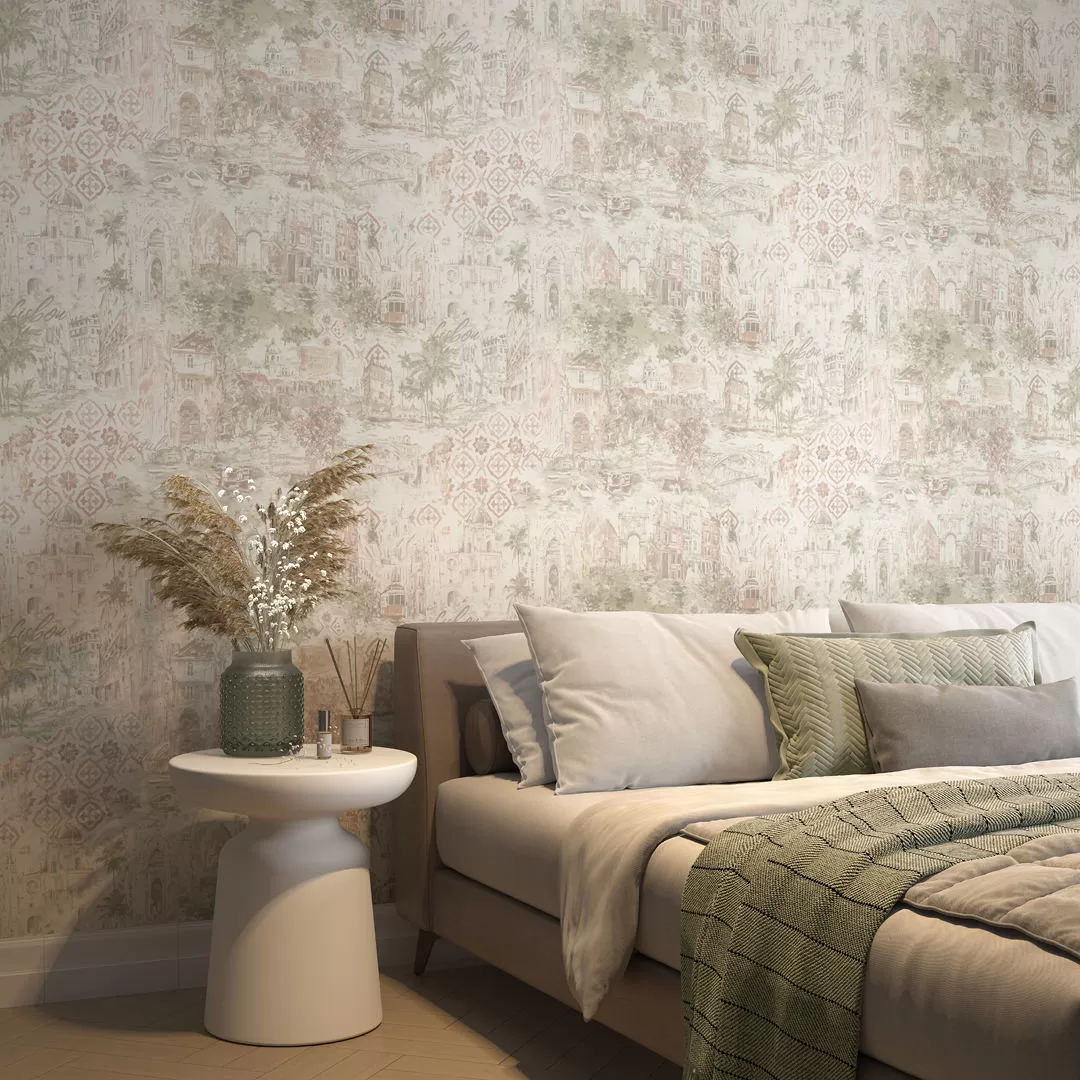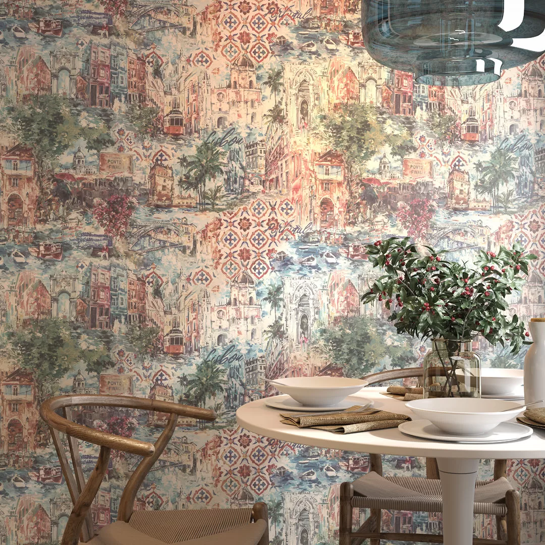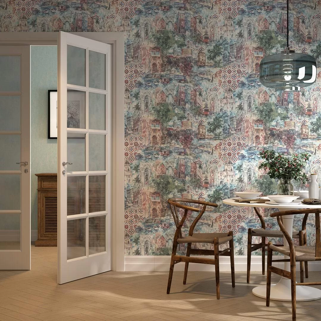 Обои «Впечатление» вдохновлены красотой Португалии — и, в свою очередь, смогут наполнить настроением приятных каникул любое пространство. Рисунок мотивов проработан до деталей. В линейке есть полноцветный вариант с насыщенными красками, а также вариации в зелёных, бежевых и голубых оттенках. Фоновые обои воспроизводят эффект кракле — окрашенной поверхности с видимыми «прожилками».