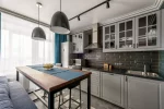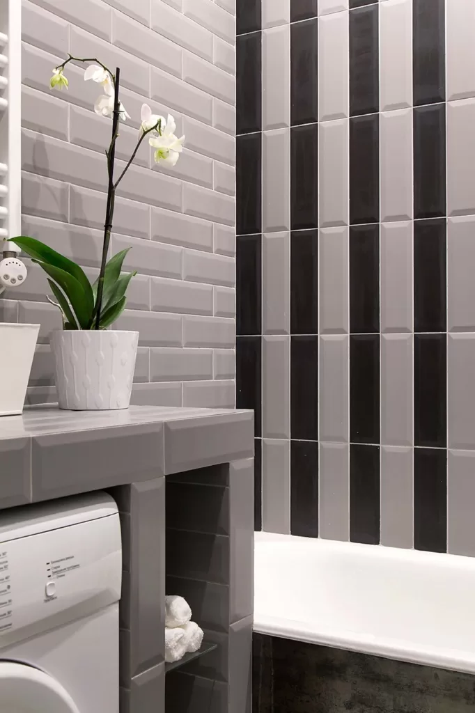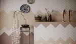 Как звуки выстраиваются в музыкальную гамму, так же оттенки цвета образуют здесь ряд из семи разных тонов. Фоновая плитка со структурой «диамантато» поддержана декорами с авторской графикой.