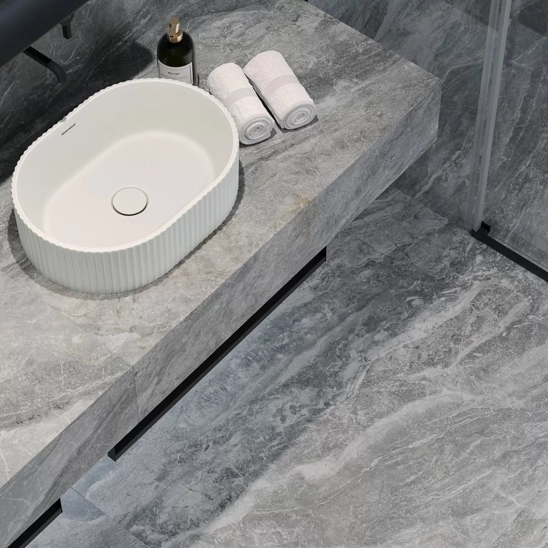 Поверхность мрамора «Арабескато Гриджио» передана в этой серии удивительно реалистично благодаря фактуре. Современная технология декорирования поверхности Dry Fix позволяет воспроизводить мельчайший рельеф, переливающиеся минеральные вкрапления и прожилки. Особую ценность материалу придают новый крупный формат и устойчивость к глубокому истиранию.