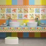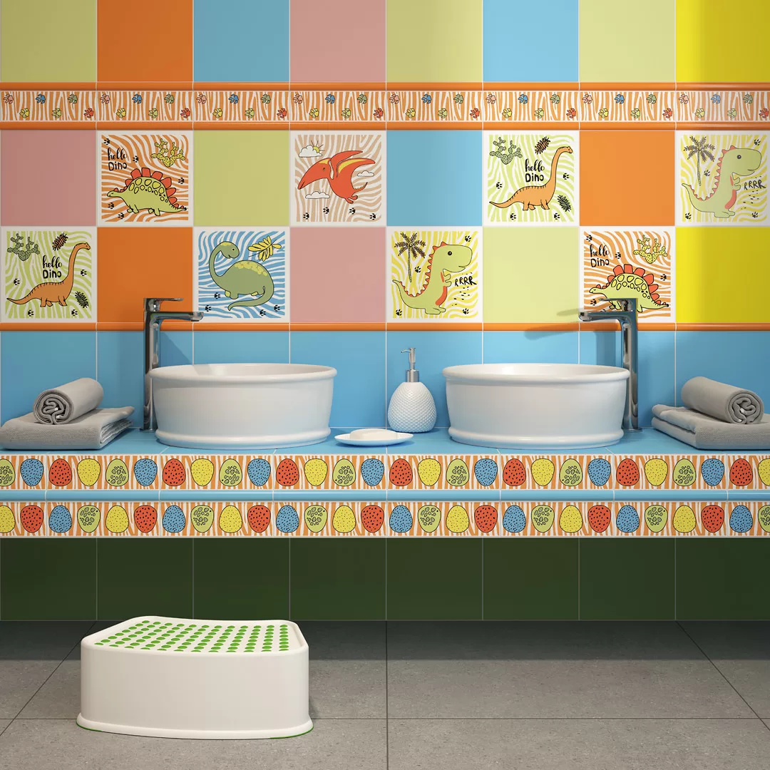 Пять декоративных элементов и два бордюра посвящены весёлым динозаврикам: на стене из них можно сложить целый «доисторический» сюжет! Рисунки выполнены методом шелкографии и доработаны по контуру специальным составом для создания эффекта объёма.