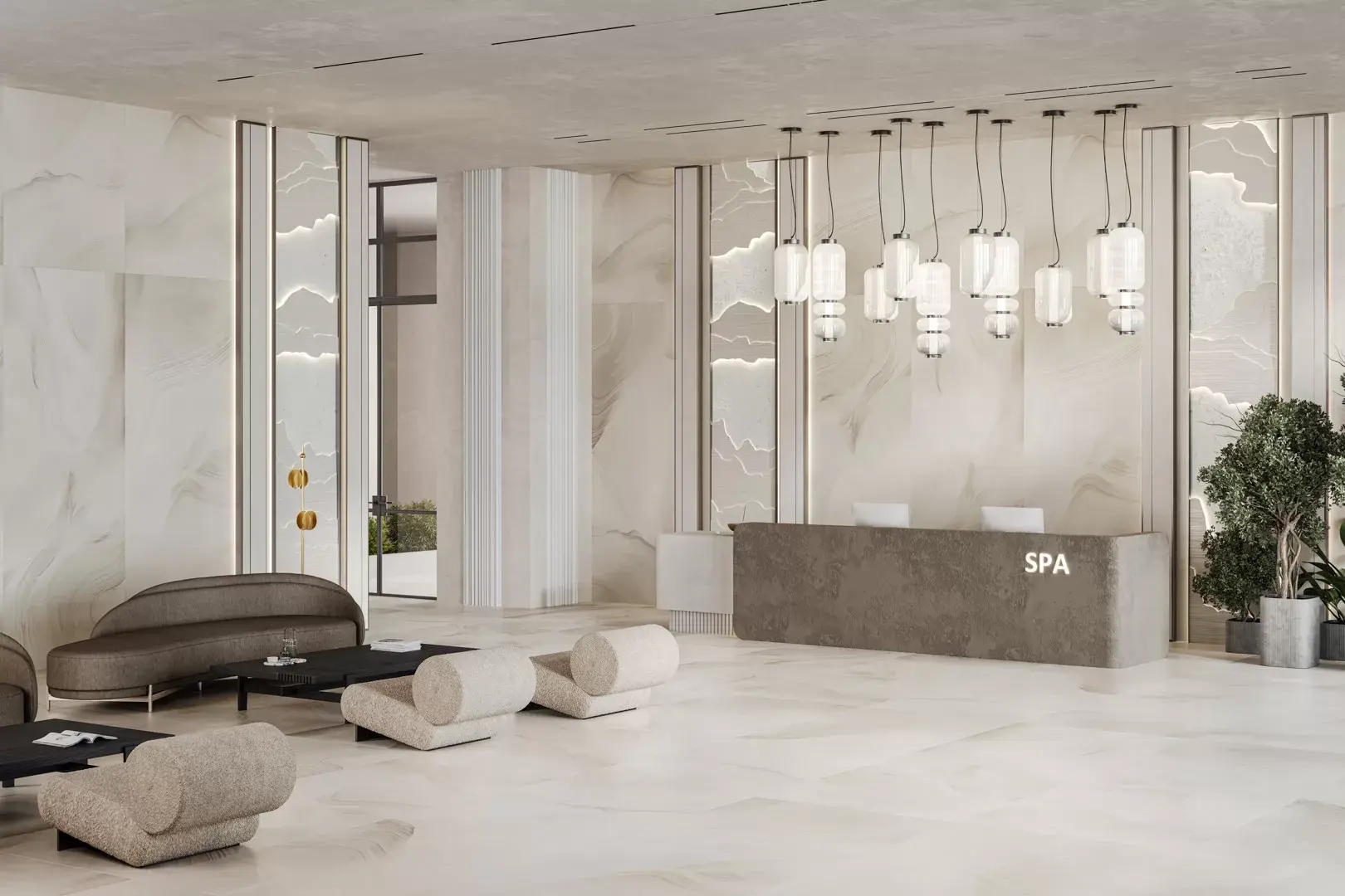 Изображение на этих панелях формата СУПЕРМАКСИ напоминает поверхность песка с причудливым рисунком, созданным ветром. В текстуре заметна природная красота, использовать которую для своего проекта можно в формате 119,5×320 при толщине 6 либо 11 мм. Керамогранит песочного цвета объединяет природную эстетику и необычную текстуру, выглядящую современно.