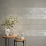 На декоративной плитке 20×50 воспроизведена благородная старина, характерная для Венеции. На бетонную основу словно наброшено тонкое кружево — ещё один очень венецианский мотив. Декоры выполнены с применением металлизированной краски, отчётливо проступающей на свету.