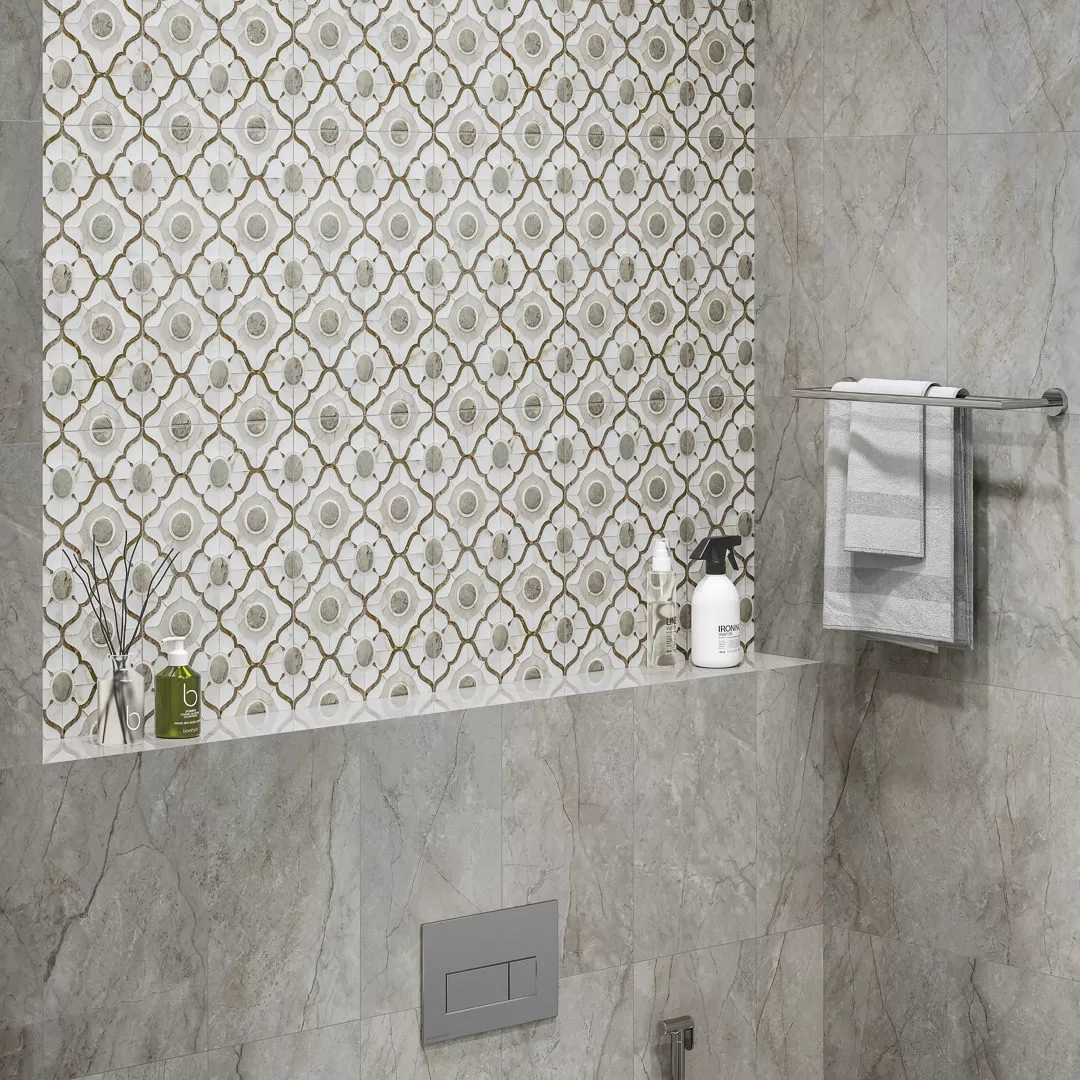 Изюминка серии — стильная мозаика. Четыре вида мозаичных декоров позволяют создать каскад, в котором светлые элементы плавно перетекают в тёмные. Такой приём будет эффектно смотреться как в вертикальной раскладке, так и по горизонтали — например, на кухонном фартуке.