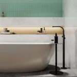 С таким же рисунком выпускаются бордюры, вставка и декоры для укладки на пол. Керамогранитная плитка 40×40 см с напольной декорацией и керамическими плинтусами может использоваться не только в сочетании с настенными, но и самостоятельно: например, в прихожей или гостиной.