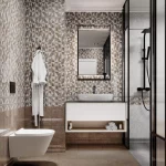 Графика серии «Каприччо» вдохновлена каррарским мрамором и выполнена с впечатляющей детализацией. В качестве палитры керамической плитки для стен выбраны одни из самых востребованных оттенков: белый, серый и коричневый. Керамогранит для пола выполнен в схожей гамме.