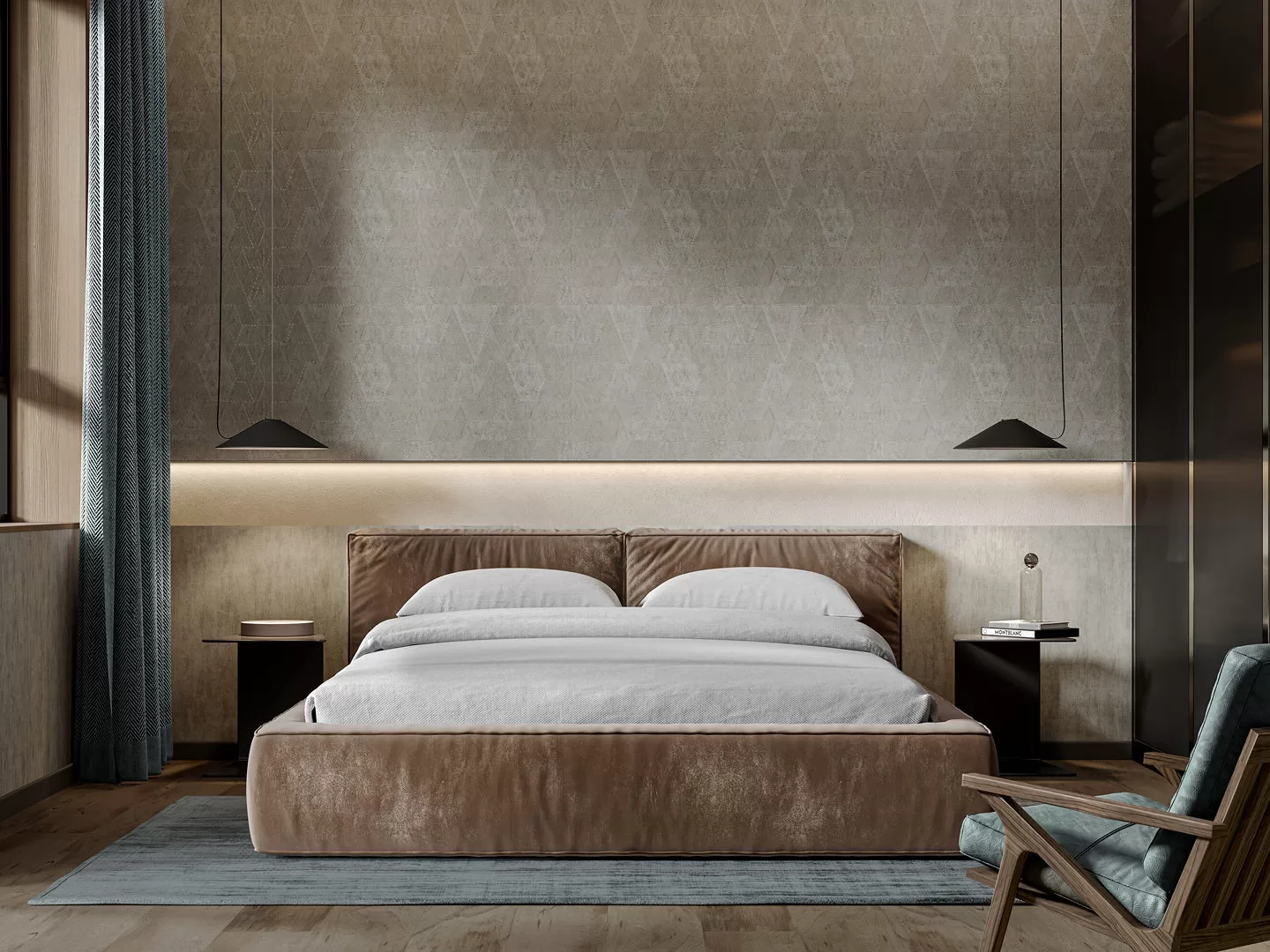 Помимо пяти мотивов, в серии представлены и фоновые обои — они воспроизводят уютный текстиль с эффектом сдержанного блеска. Мягкость линий фоновых обоев отлично дополняет геометрическую строгость мотивов: такой «дуэт» отлично сработает в гостиной или спальне, где одновременно важно выдержать стиль и обеспечить комфорт.