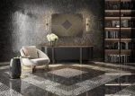 Контраст чёрного и белого мрамора — беспроигрышный вариант для создания обстановки. Ещё одно оригинальное декоративное решение, впервые предложенное в этой серии, — своеобразный «дуэт» плитки с отверстием и совпадающих с ним круглых элементов для включения в композицию собственных наборных декоров.