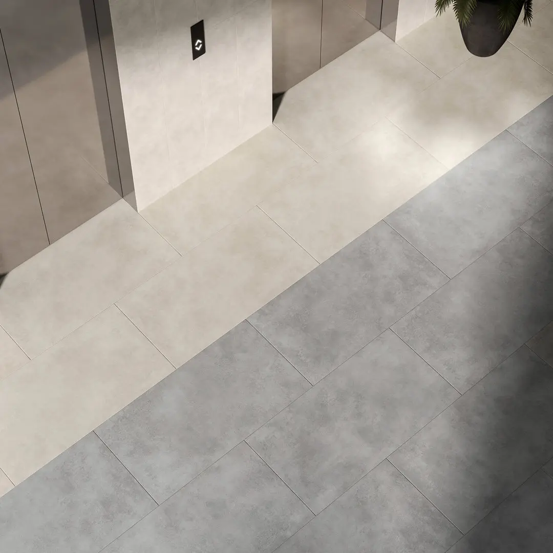Популярная серия «Мирабо» часто используется при реализации проектов: керамогранит, окрашенный в массе в цвет поверхности, обладает повышенной устойчивостью к истиранию. Теперь серия дополнена настенной плиткой в формате 30×60, в той же линейке цветов: это серый, серый светлый, серый темный и бежевый. Помимо обычной плитки, в этих цветах представлена и плитка с преднарезкой. Она делит формат 30×60 на 10 частей размером 30×6 см. Это позволяет после затирки швов получить на стене эффект крупной мозаики, укладка которой не требует дополнительных затрат.