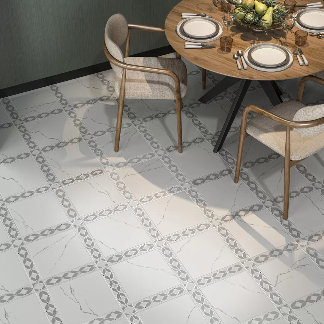Описание Дизайн коллекции лаконичен и в то же время роскошен и богат. Легкие прожилки кракелюра на базовой плитке белого и