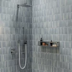 Структурированные элементы 15×15 с узором станут отличным дополнением плитки для ванной комнаты. Обратите внимание на объёмную рамку вокруг паттерна: она соответствует структуре бордюров — это даёт возможность делать ещё более разнообразные керамические раскладки, части которых связаны общим стилем.