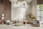 Полированный керамогранит под серый мрамор — интерьерное решение, пользующееся спросом. Такой благородный фон придаёт интерьеру глубину и строгость, а также служит надёжной основой для дизайнерских акцентов. Материал воспроизводит красоту тосканского мрамора породы «Бардилио Империале»: он отличается мягким, почти незаметным рисунком, который сформирован тонкими светлыми прожилками. После полировки керамогранит раскрывается в полную силу — рисунок становится более ярким и контрастным.