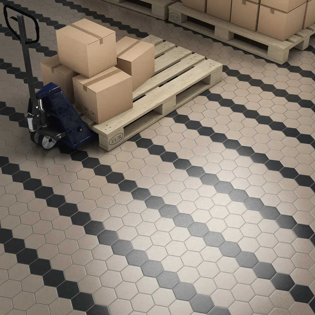 Новый взгляд на неглазурованный керамический гранит «соль-перец»: серия «Натива» с увеличенной толщиной 15 миллиметров. Материал, устойчивый к глубокому истиранию, предназначен для использования в помещениях, рассчитанных на интенсивные нагрузки, таких как производственные и торговые площади, технические и рабочие зоны, вокзалы и аэропорты. В серии представлены три цвета и сразу три формата на выбор: мини-шестиугольник, прямоугольник и квадрат 19,8×19,8. Вариативность цвета и формы обеспечивает множество вариантов укладки.
